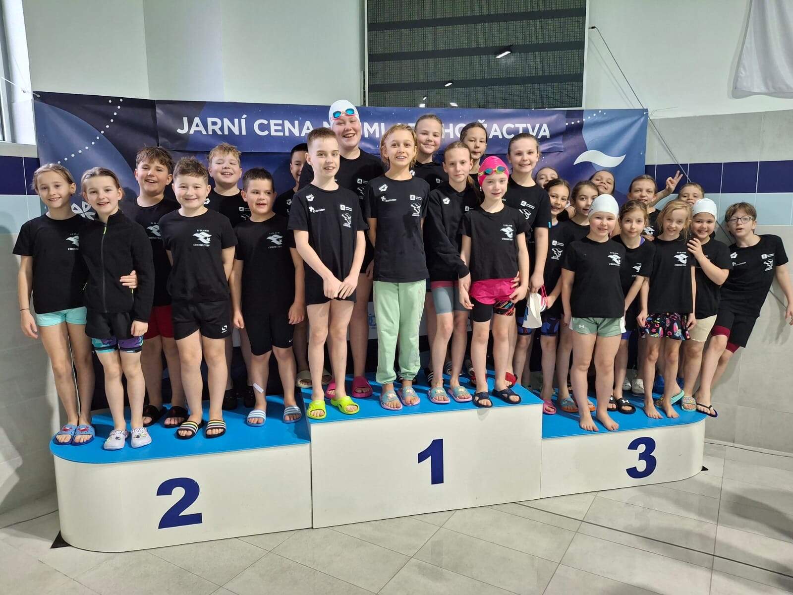 Domácí plavci byli zastoupeni 32 mladými závodníky a závodnicemi, přičemž daleko početnější bylo zastoupení dívek. Těch bylo 21. A právě dívky se postaraly o ty největší úspěchy TJ Slávie Chomutov. Mezi 11letými Klaudie Karhanová získala hned 3x 1. místo na 400 volný způsob, 100 znak a 100 polohový závod. Do toho zvládla ještě získat 2. místo na 100 prsa. Její kamarádka a týmová kolegyně Adéla Schnitterová obsadila za ní 2x 2. místo na 100 znak a 400 volný způsob. Stejně starý Theodor Leden získal 2. místo na 400 volný způsob a 2x 3. místo na 50 motýlek a 100 polohový závod.